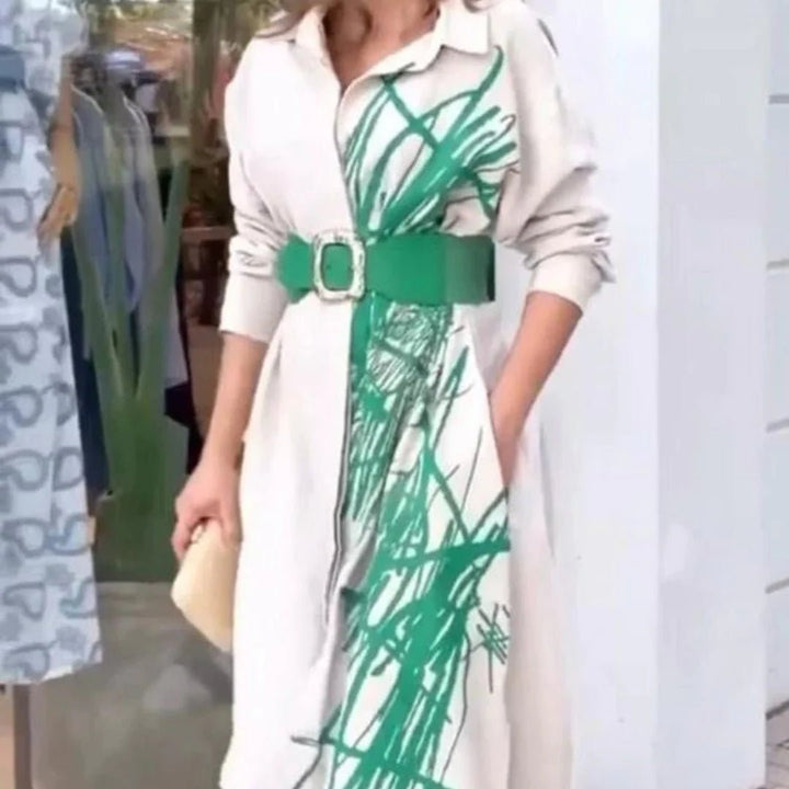 Skjortklänning med Kontrasterande Linjetryck (Exklusive Bälte)
